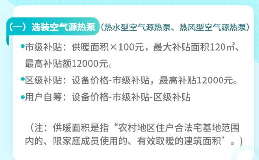 2020年延庆计划对5个乡镇46个村庄1万余户实施“煤改电”,改造工程为110个村庄8000余户提供优质燃煤,预计供暖季前基本完成“煤改电”设备安装和优质燃煤供应。2020年“煤改电”补贴政策解读用户可根据采暖面积合理选择热水型空气源热泵、热风型空气源热泵和储能式电暖器三种取暖设备,政策最高能给予2.4万元的补贴。在采暖季固定时段,用户还可享受0.1元/度(最高不超过1万度)的电价优惠。