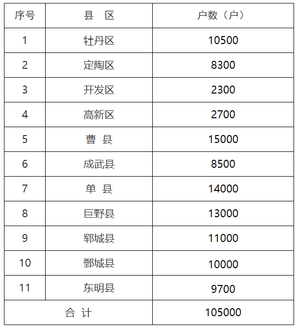 菏泽市2021年度农村地区清洁取暖任务分解表